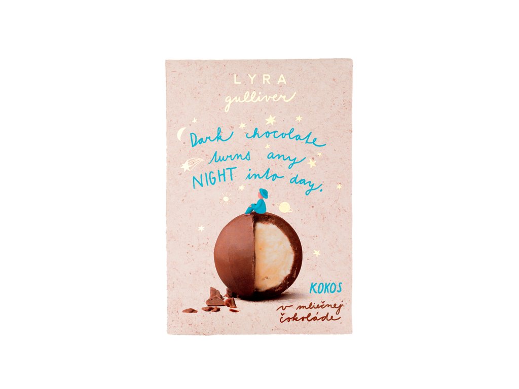 Jemná mliečna čokoláda, kokosová náplň. Zloženie: mliečna čokoláda (50 %) – kakaové maslo, cukor, sušené mlieko, kakaová hmota. Náplň (50 %) – cukor, strúhaný kokos (35 %), kakaové maslo, kokosový olej, odtučnené sušené mlieko, plnotučné sušené mlieko. Emulgátor: sójový lecitín, vanilkový extrakt. Môže obsahovať orechy. Obsah kakaovej sušiny min. 50%. Nutričné hodnoty na 100 g: Energetická hodnota 2520 kJ / 595 kcal, tuky 43 g, z ktorých nasýtené mastné kyseliny 30 g, sacharidy 48 g, z toho cukry 41 g, vláknina 5.2 g, bielkoviny 6.6 g, soľ 0.04 g.